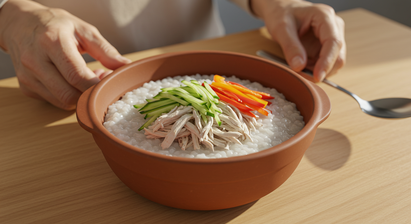 불 없이 만드는 여름 보양식: 치매 어르신 소근육 발달 돕는 초계풍 미니 삼계죽