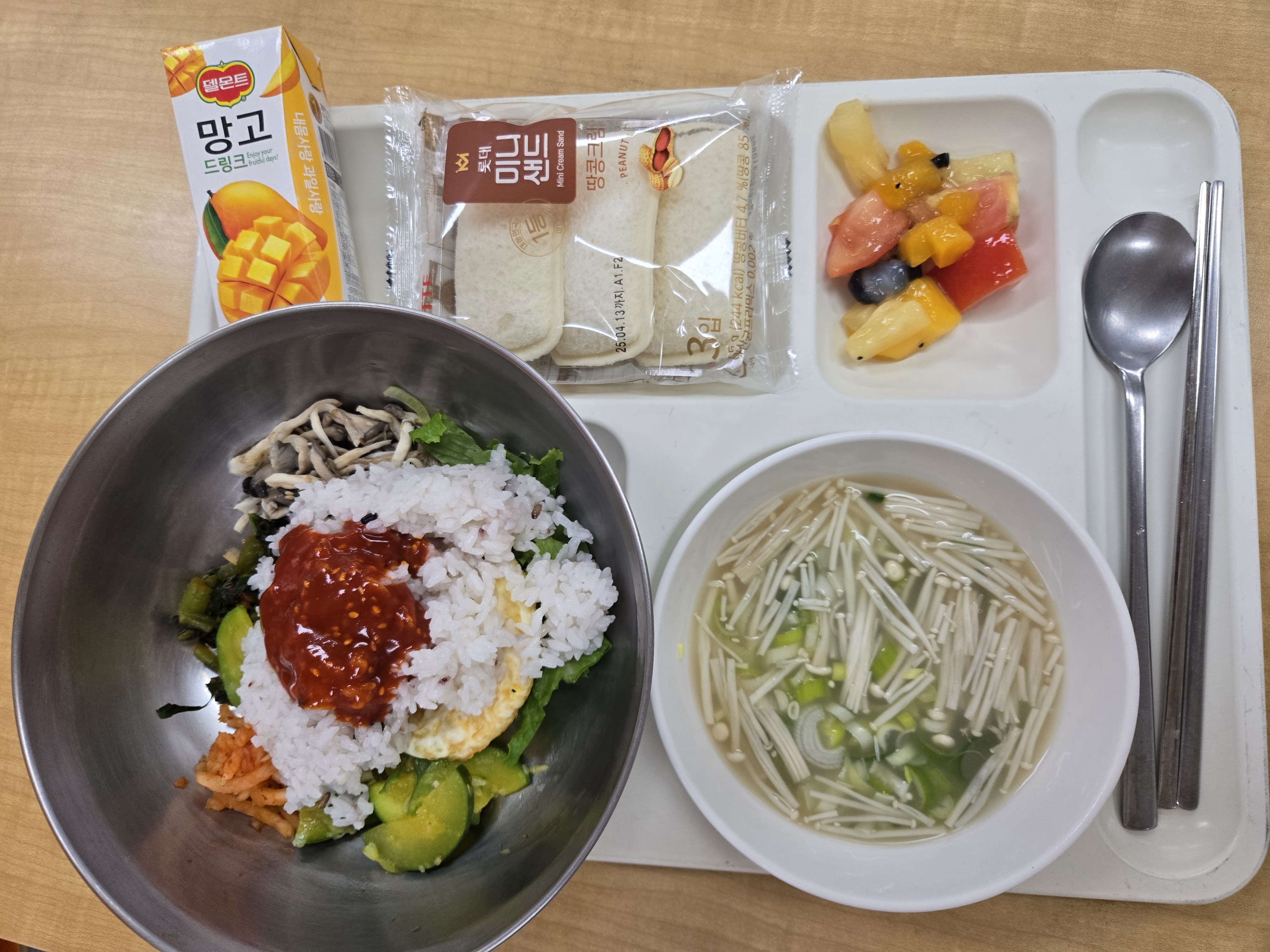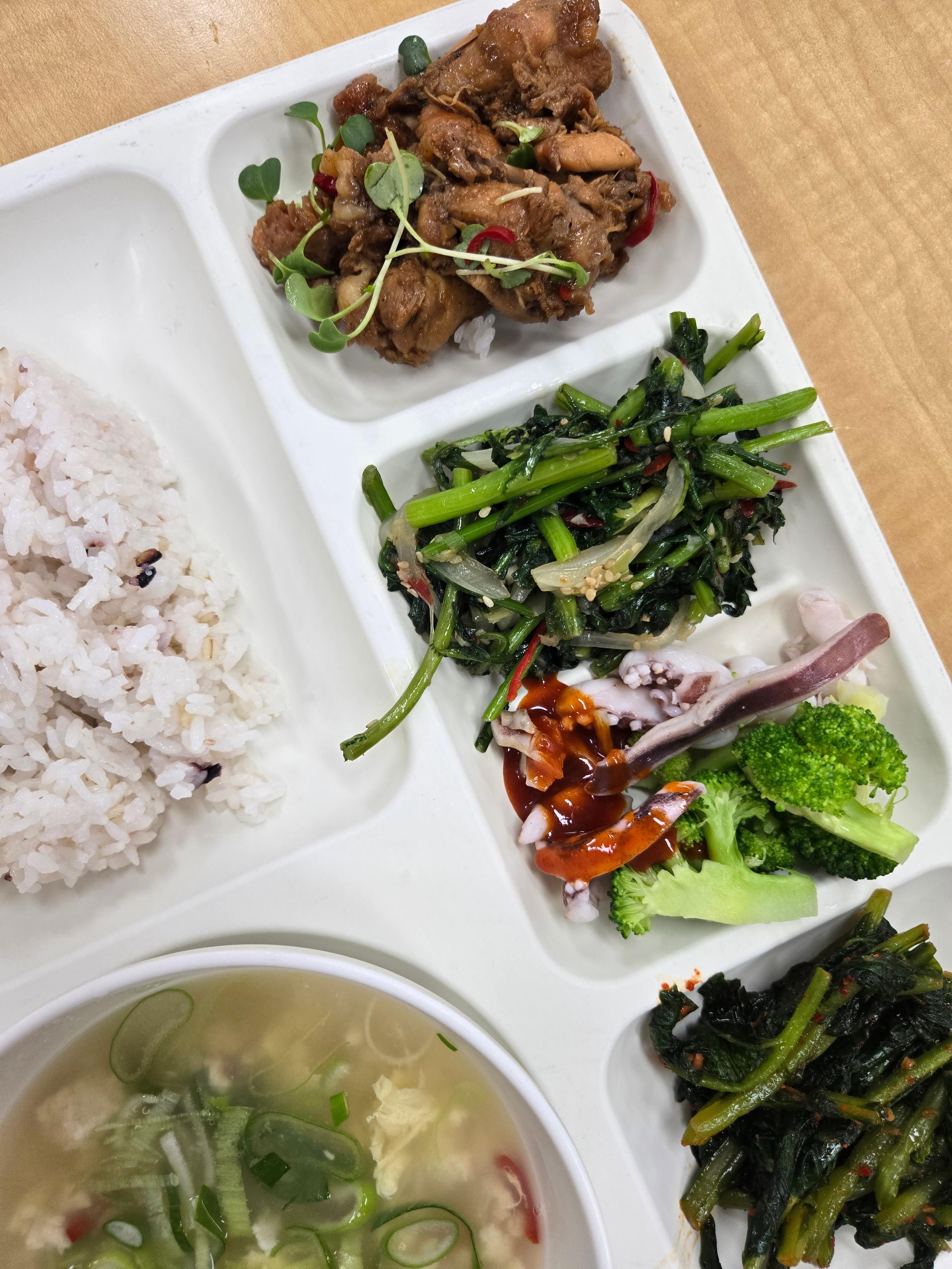 🌿몽글순두부계란탕 닭봉조림 쑥갓볶음 오징어브로컬리숙회/초장🍲 몽글몽글 순두부계란탕따뜻하고 부드러운 한 그릇으로 마음까지 데워주는 순두부계란탕입니다. 몽글거리는 순두부와 고소한 계란이 어우러져 깊고 진한 맛을 선사합니다.🛒 재료 (200인분 기준)순두부 21kg계란 1판다진 마늘 멸치육수 25L국간장 700ml천일염 적당량대파 0.5kg🧑🍳 작업 공정멸치육수를 끓인 후 순두부를 넣고 살살 풀어줍니다.국간장과 천일염으로 간을 맞춰줍니다.계란을 풀어 넣고 살짝 저어 몽글몽글한 식감을 만듭니다.다진 마늘과 대파를 넣어 향을 더해줍니다.💡 영양사 팁순두부는 소화가 잘 되어 어르신들도 부담 없이 드실 수 있어요.계란의 단백질과 순두부의 영양이 만나 영양밸런스가 뛰어납니다.간을 세게 하지 않아 건강에 더..