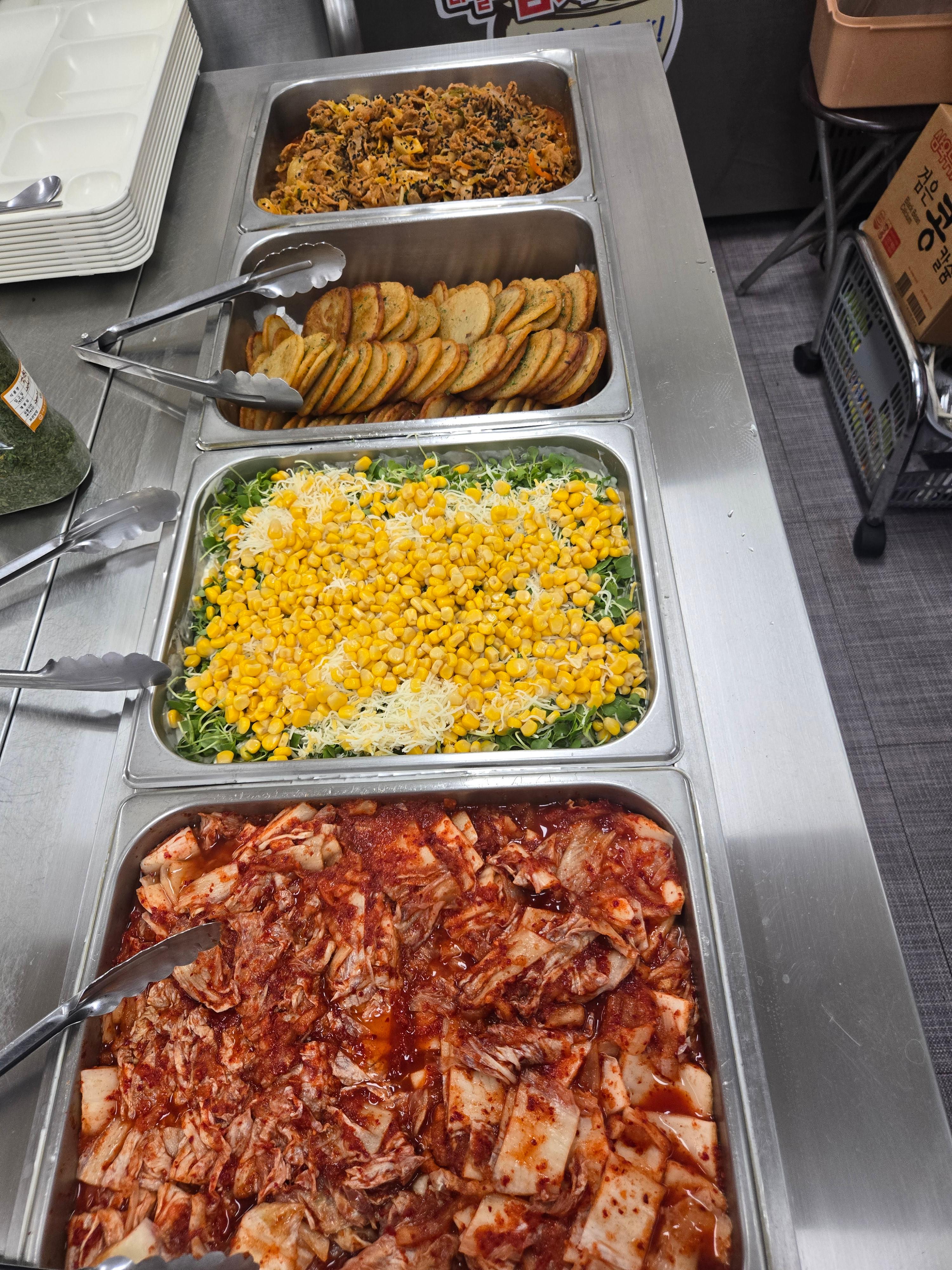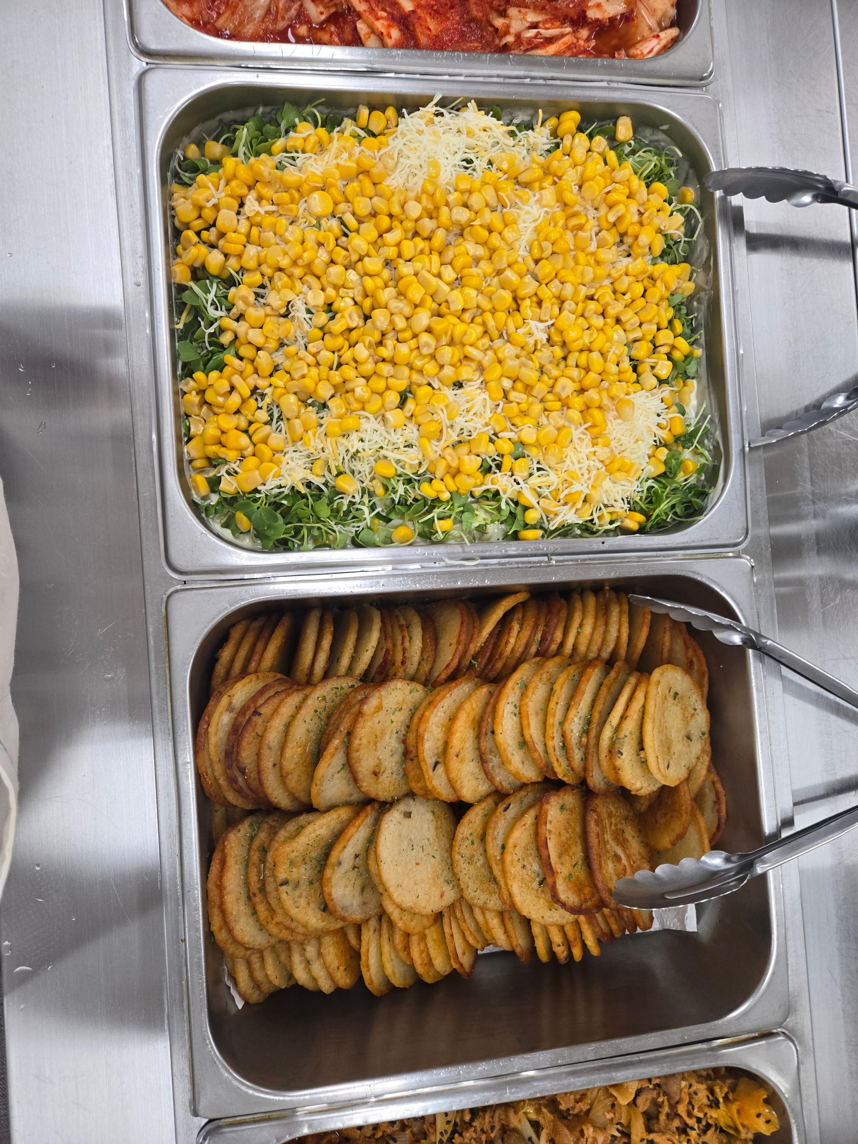 제육볶음 · 감자전 · 갈릭스파게티샐러드