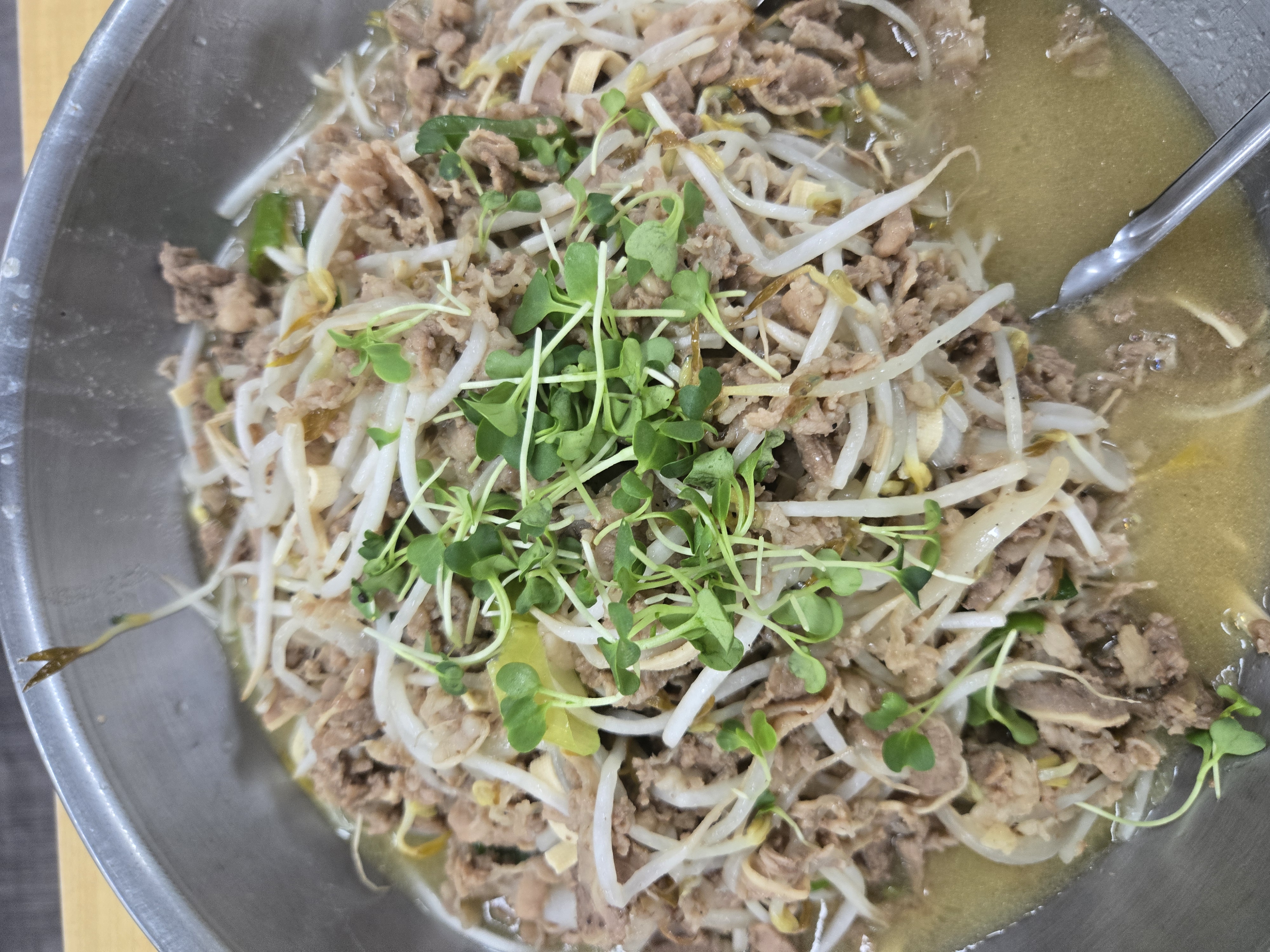 - 저희 업장은 조리장님 한분에 나머지는 봉사자와 어르신들 뿐이여서 가능한 쉬운 공정으로 조리하려고 노력하는 편이예요. 미역은 미리 불려서 준비해두고, 멸치육수에 사골육수를 조금 참가하여 더욱 깊은 맛을 내었습니다. 고기는 따로 넣지 않았지만 사골육수의 감칠맛이 더해져 어르신들이 "옛날 미역국 맛이 난다"며 정말 좋아하셨어요.