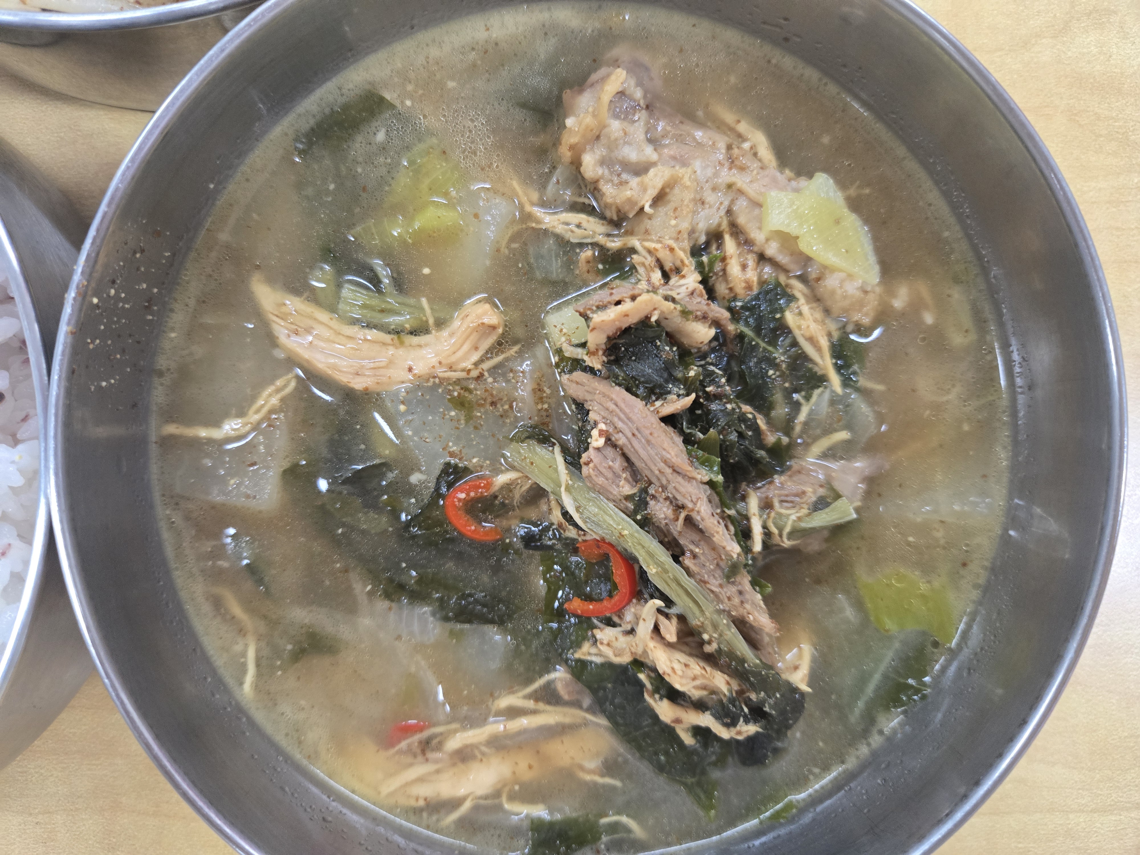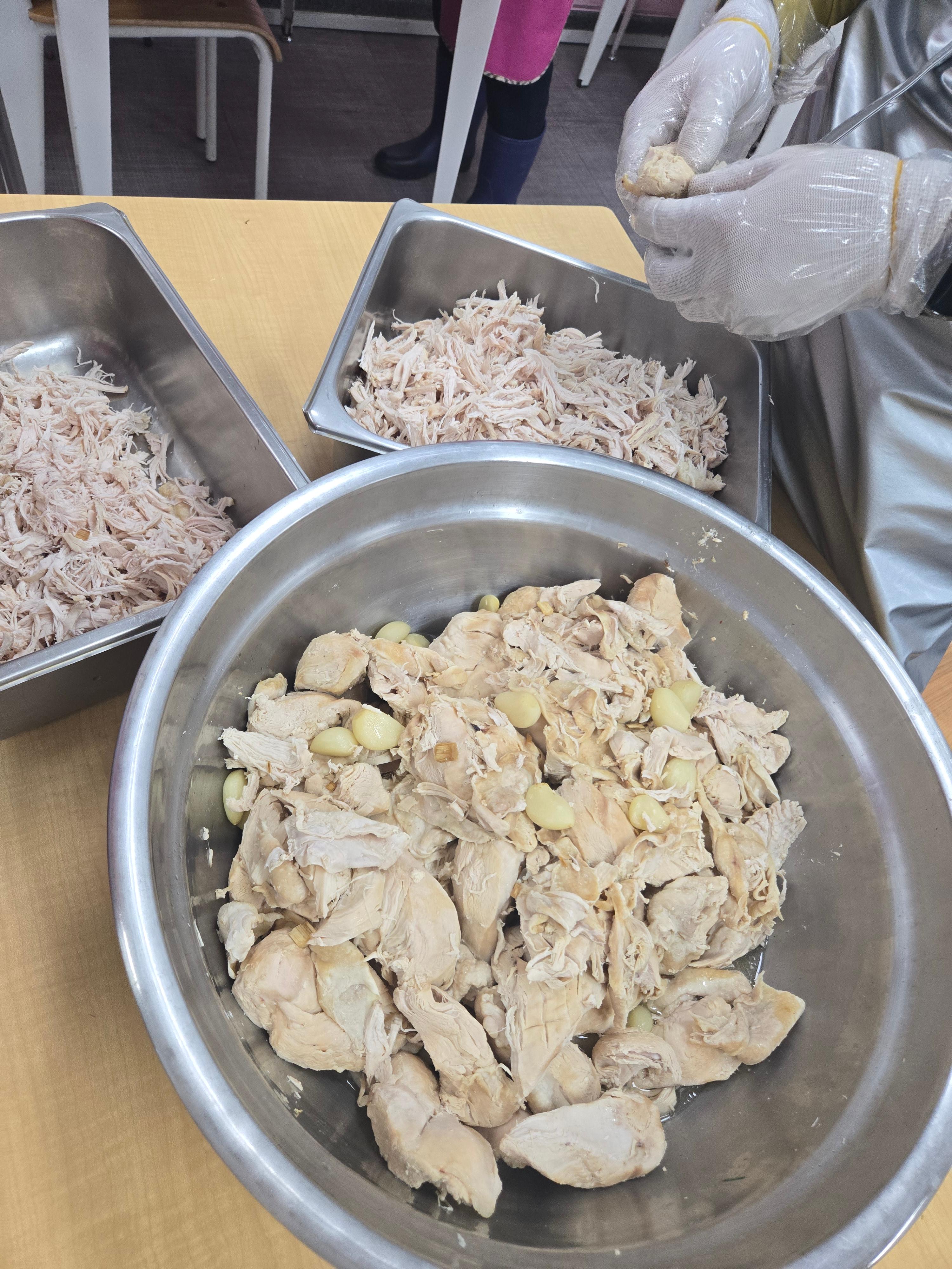 • 저희 업장은 조리장님 한분에 나머지는 봉사자와 어르신들 뿐이여서 가능한 쉬운 공정으로 조리하려고 노력하는 편이예요 한방오리탕이긴 하지만 닭가슴살 썰어진걸 데쳐서 함께 찢어서 넣었구요 닭육수와 삼계용티백으로 육수 맛을 냈습니다 무청시래기와 무우가 들어가 시원하고 들깨가루를 많이 넣었더니 보양식이라고 너무 좋아하셨어요